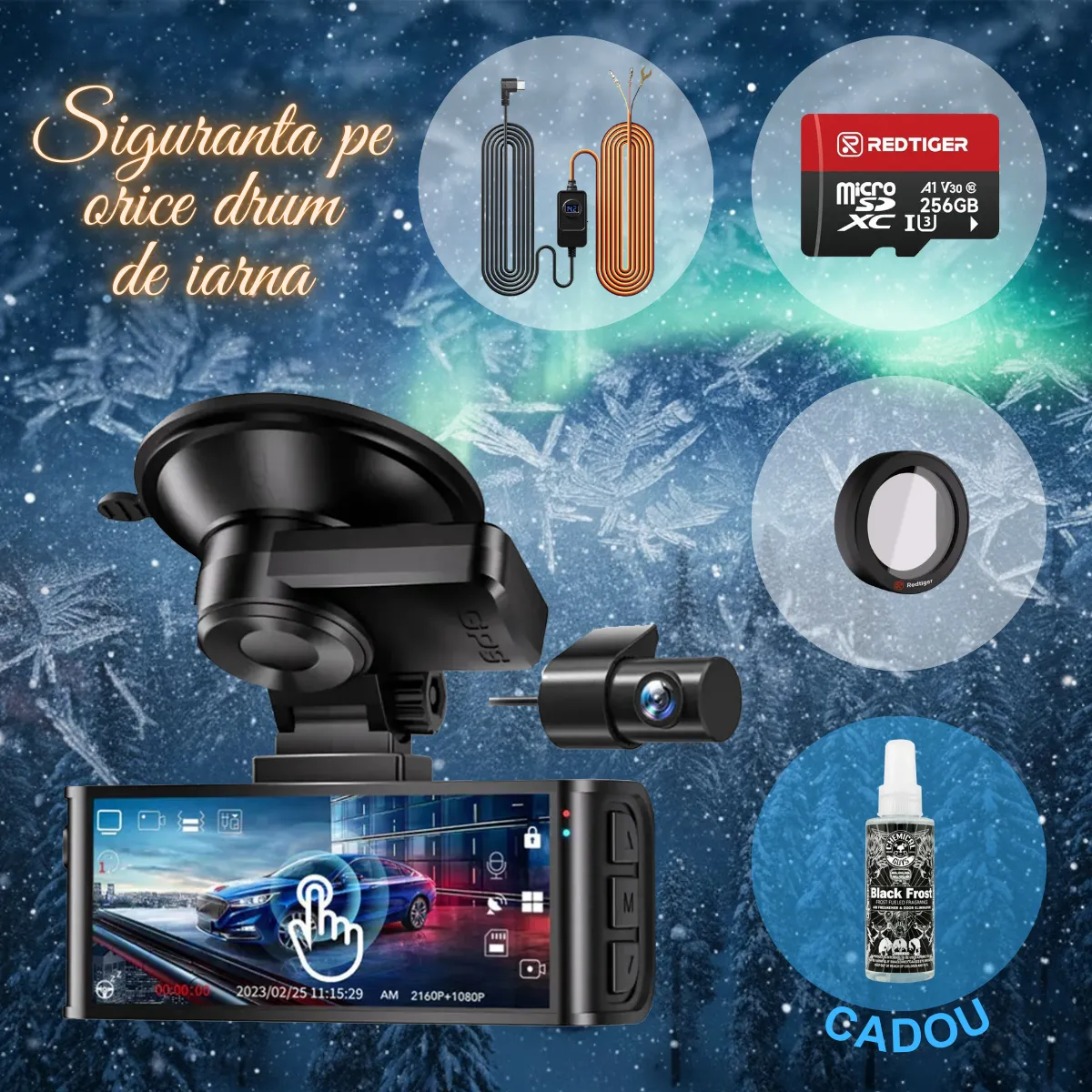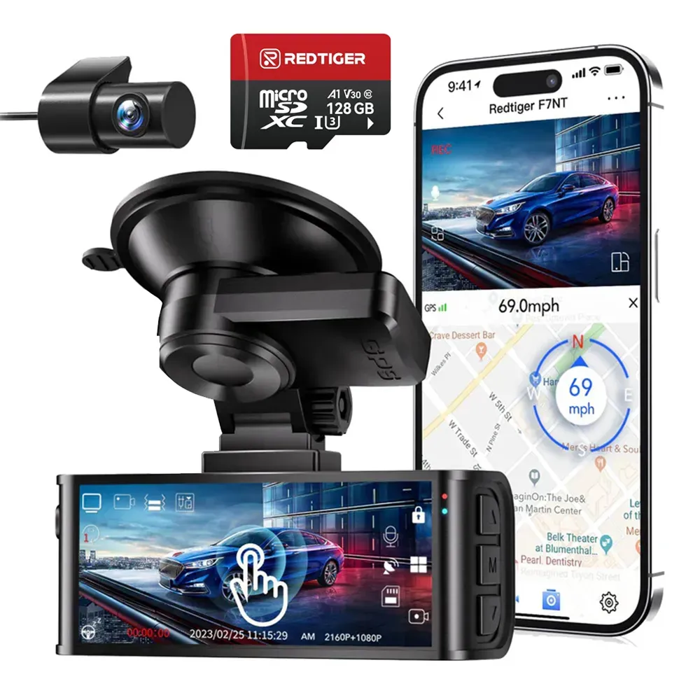 Pachet Cadou REDTIGER F7N Touch 4K+FHD, WiFi, Night Vision, 170°, ecran tactil IPS 3.18", GPS