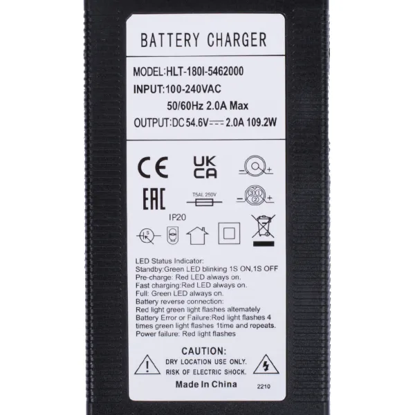 Incarcator pentru trotinete electrice 48V, input 2.0A, output DC54.6V / 2.0A, 109.2W