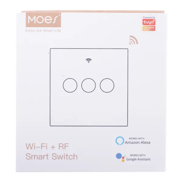 Intrerupatorul este compatibil cu aplicatiile inteligente Tuya si Smart Life, dar poate fi controlat si prin intermediul comenzilor vocale oferite prin Google Assistant sau Amazon Alexa.