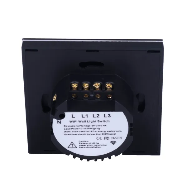 Intrerupatorul este realizat din sticla securizata, are doua butoane si poate fi actionat si daca aveti apa pe maini. Cele trei butoane va permit control independent pentru fiecare, functioneaza exact ca un intrerupator clasic.
