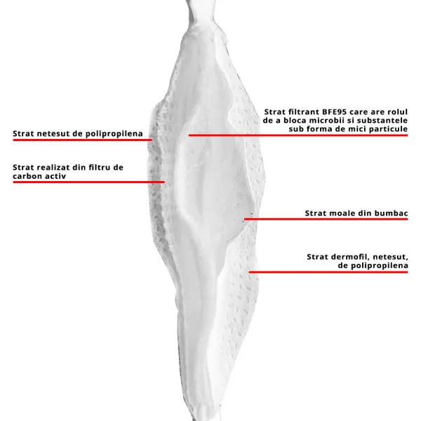 - un strat filtrant BFE95 care are rolul de a bloca microbii si substantele sub forma de mici particule