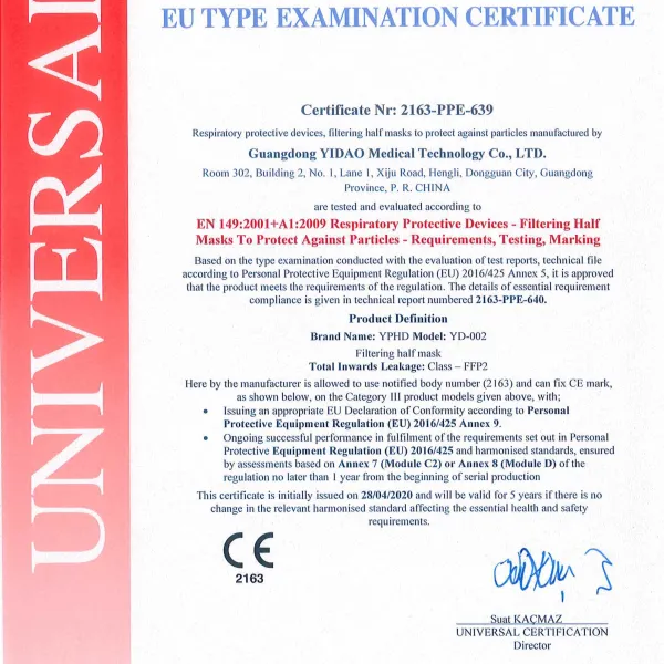 Mastile sunt realizate in conformitate cu standardele EN 149:2001 + A1:2009 si CE 2163