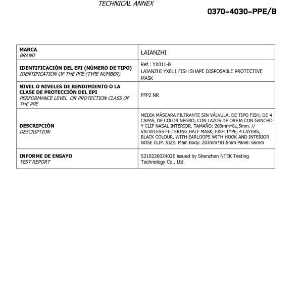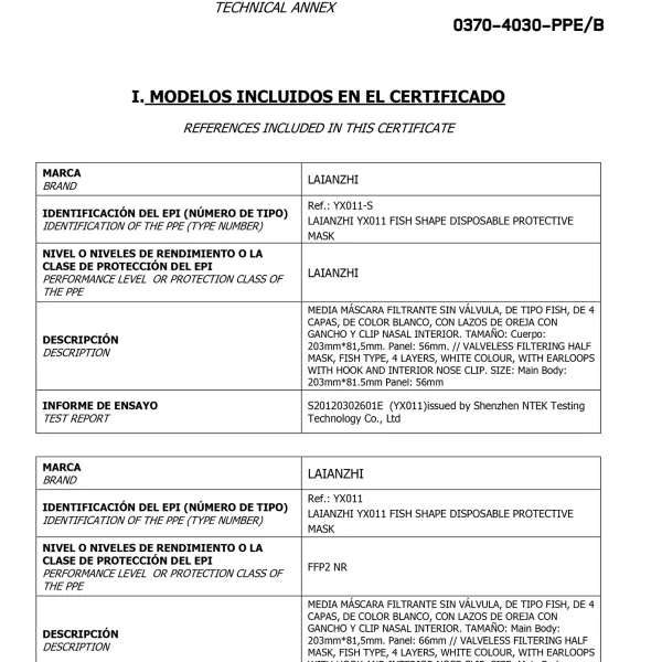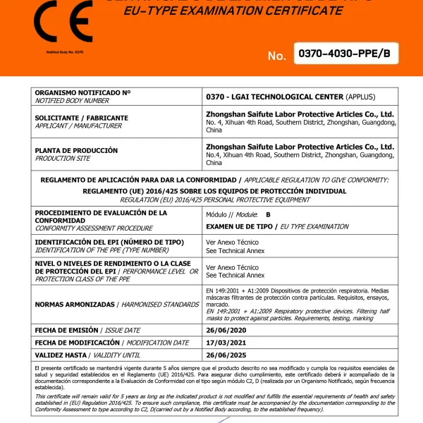 Mastile sunt realizate in conformitate cu standardele EN 149:2001 + A1:2009 si CE 0370.