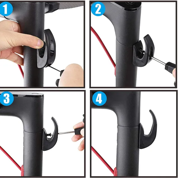 Carlig multifunctional pentru trotinete electrice Xiaomi 1S / M365 / Pro de care puteti aagata geanta, servieta, o punga de cumparaturi sau orice altceva aveti nevoie. Este un accesoriu tip DIY (Do It Yourself) ce se instaleaza foarte usor pe trotineta.
